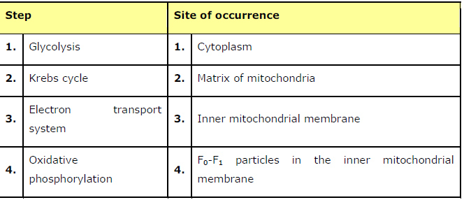 Answer The major steps in aerobic respiration and the sites where they occur are listed in the given table.