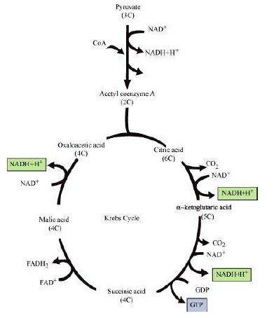 Question 5: Give the schematic representation of an overall view of Krebs cycle.