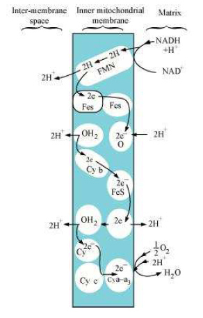 Answer ETS or electron transport system is located in the inner mitochondrial membrane. It helps in releasing and utilizing the energy stored in NADH+H+ and FADH2. NADH + H+, which is formed during glycolysis and citric acid cycle, gets oxidized by NADH dehydrogenase (complex I). The electrons so generated get transferred to ubiquinone through FMN. In a similar manner, FADH2 (complex II) generated during citric acid cycle gets transferred to ubiquinone. The electrons from ubiquinone are received by cytochrome bc1 (complex III) and further get transferred to cytochrome c. The cytochrome c acts as a mobile carrier between complex III and cytochrome c oxidase complex, containing cytochrome a and a3, along with copper centres (complex IV). During the transfer of electrons from each complex, the process is accompanied by the production of ATP from ADP and inorganic phosphate by the action ATP synthase (complex V). The amount of ATP produced depends on the molecule, which has been oxidized. 2 ATP molecules are produced by the oxidation of one molecule of NADH. One molecule of FADH2, on oxidation, gives 3 ATP molecules.