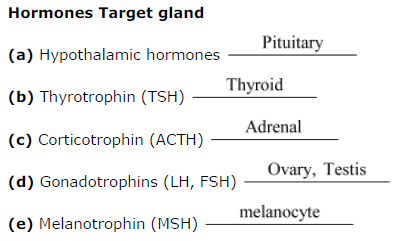 (c) Hormones: Hormones are chemical messengers that regulate physiological processes in living organisms. They act upon specific cells/tissues/organs which are called target cells/tissues/organs.