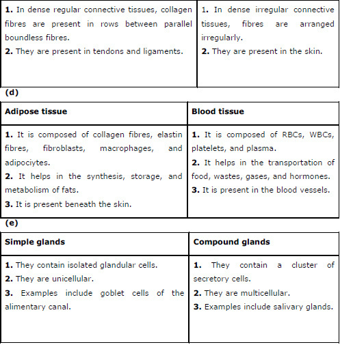 (v) Glandular epithelium:It consists of columnar or cuboidal cells involved in the secretion of substances. Glands are of two types, unicellular glands (goblet cells of the alimentary canal) and multicellular glands (salivary glands). They can be classified as exocrine (ductless glands) and endocrine glands (duct glands) by the method through which they release enzymes.