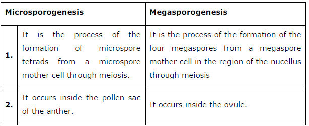 (c) Microsporogenesis results in the formation of haploid microspores from a diploid microspore mother cell. On the other hand, megasporogenesis results in the formation of haploid megaspores from a diploid megaspore mother cell.