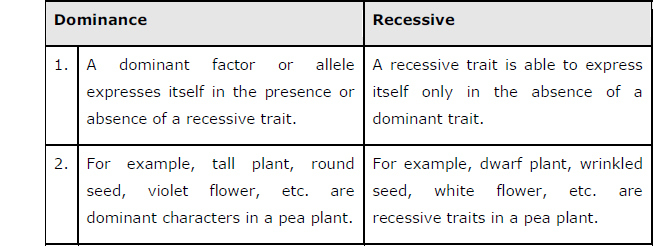 Answer(a) Dominance and Recessive