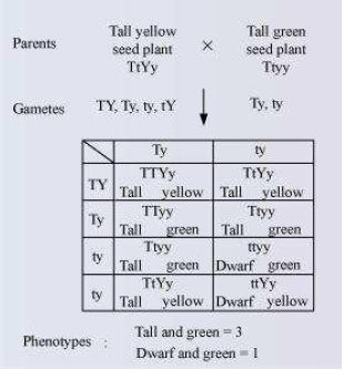 green seed (TtYy), what proportions of phenotype in the offspring could be expected to be
