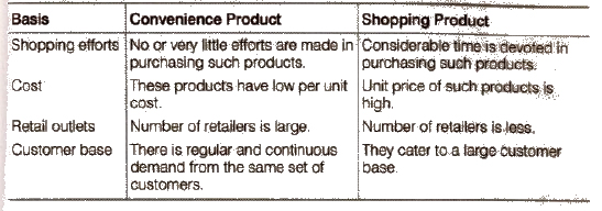 Question 5. Distinguish between convenience product and shopping product.