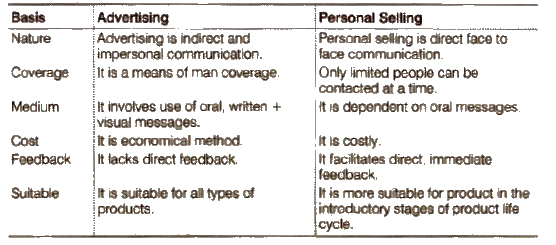 Question 9. Distinguish between advertising and personal selling.