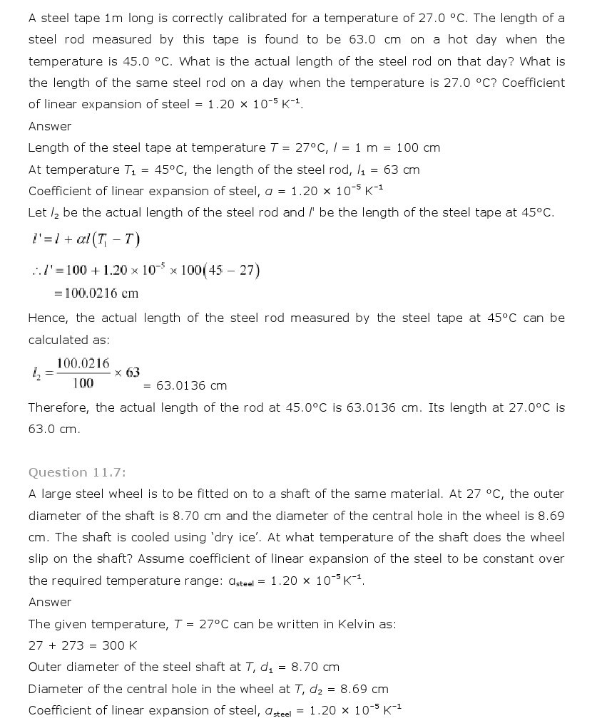 NCERT Solutions for Class 11th Physics Chapter 11 – Thermal Properties of matter
