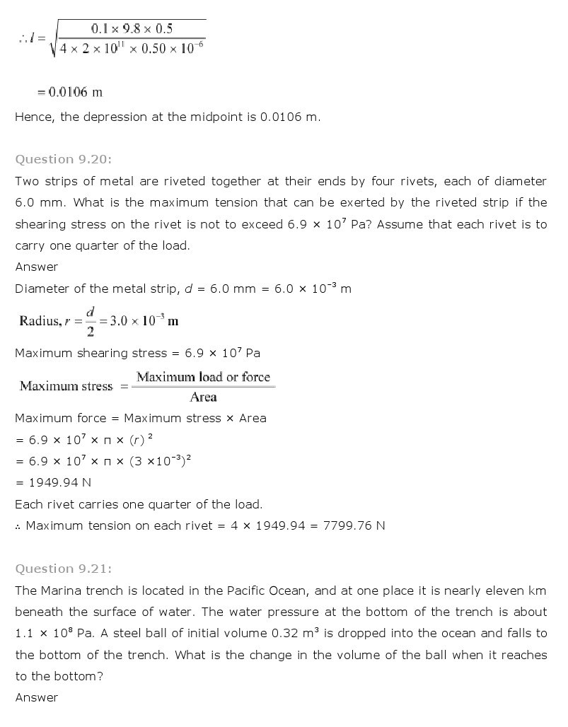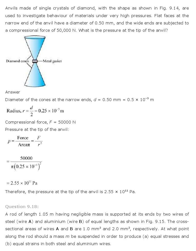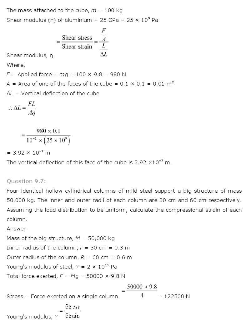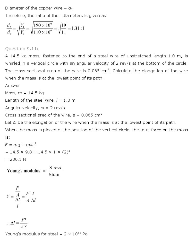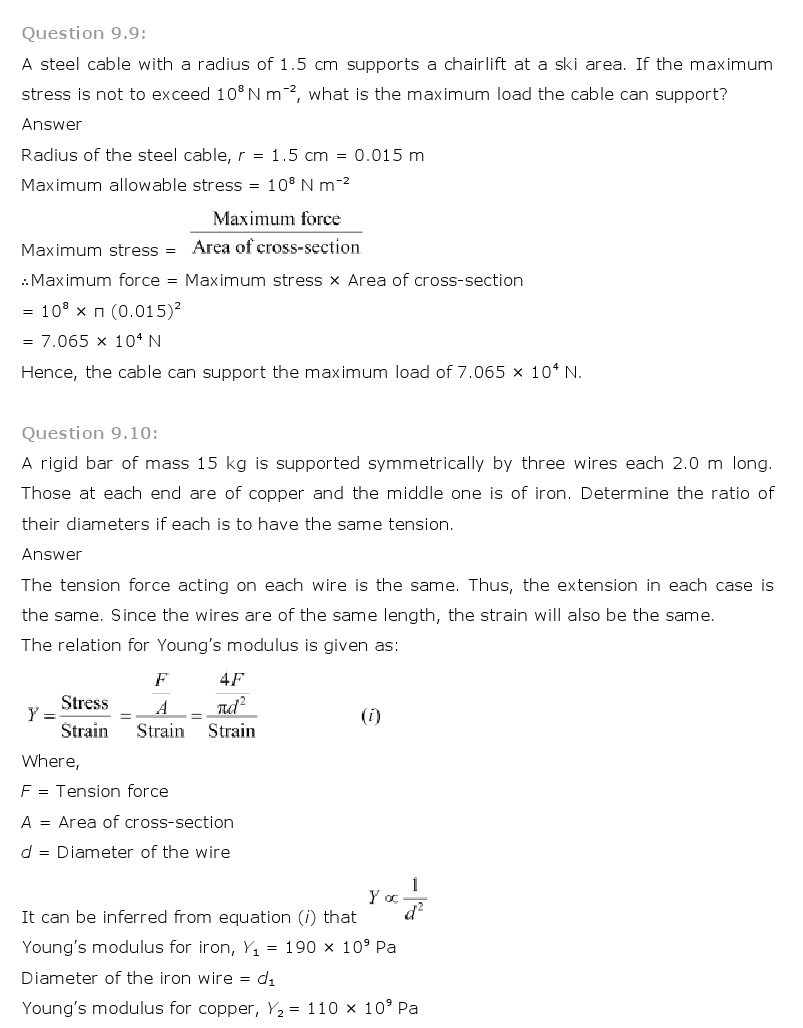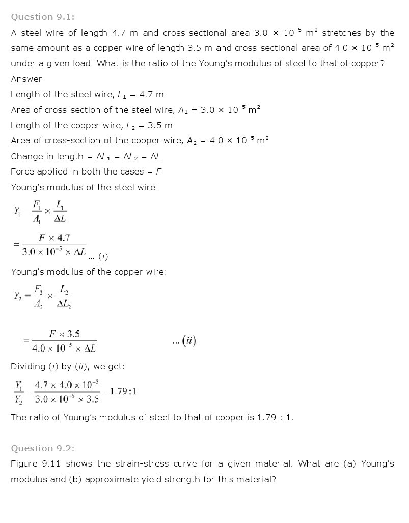 NCERT Solutions for Class 11th Physics Chapter 9 – Mechanical Properties Of Solids